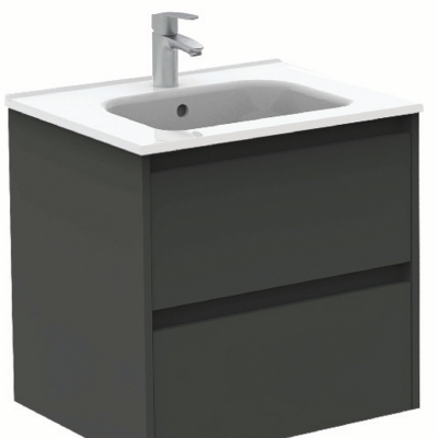 Smart Gloss Grey 60cm Vanity Unit 2 Drawer and Slim Basin
